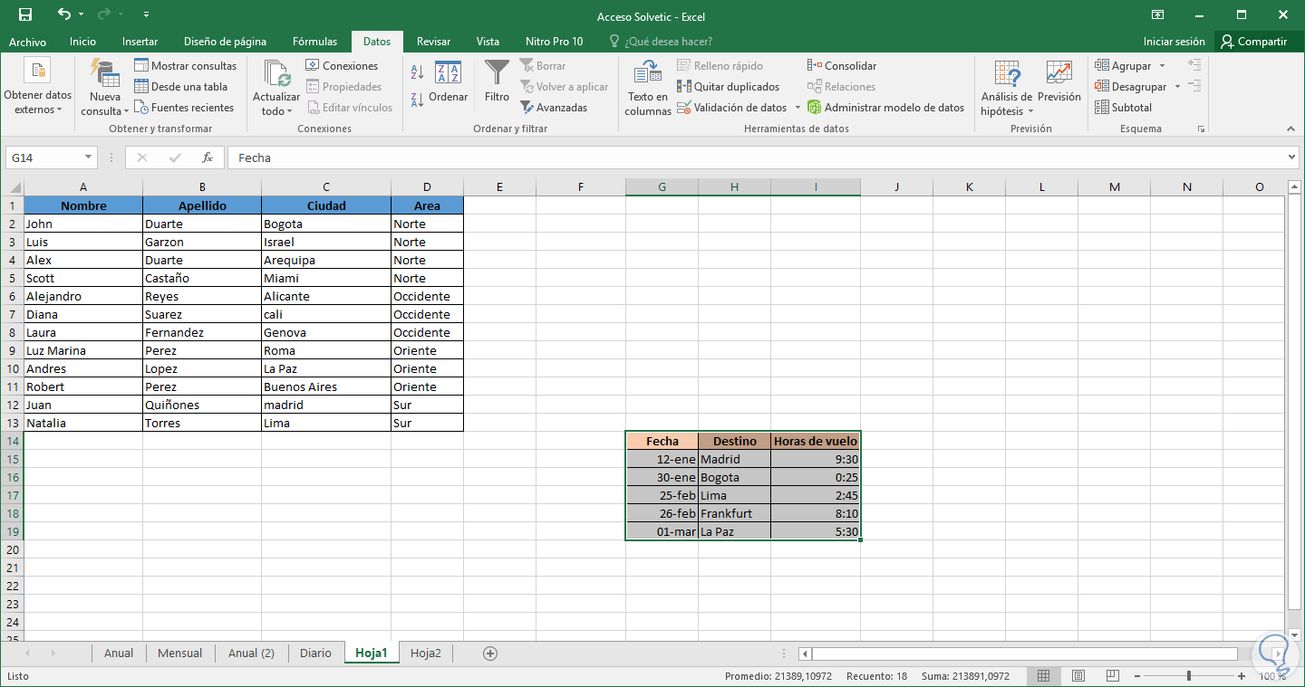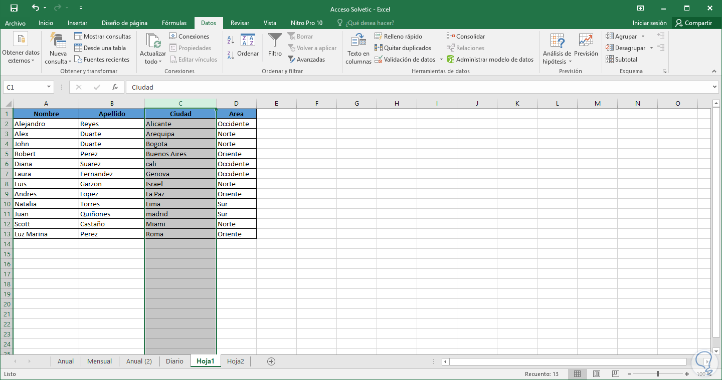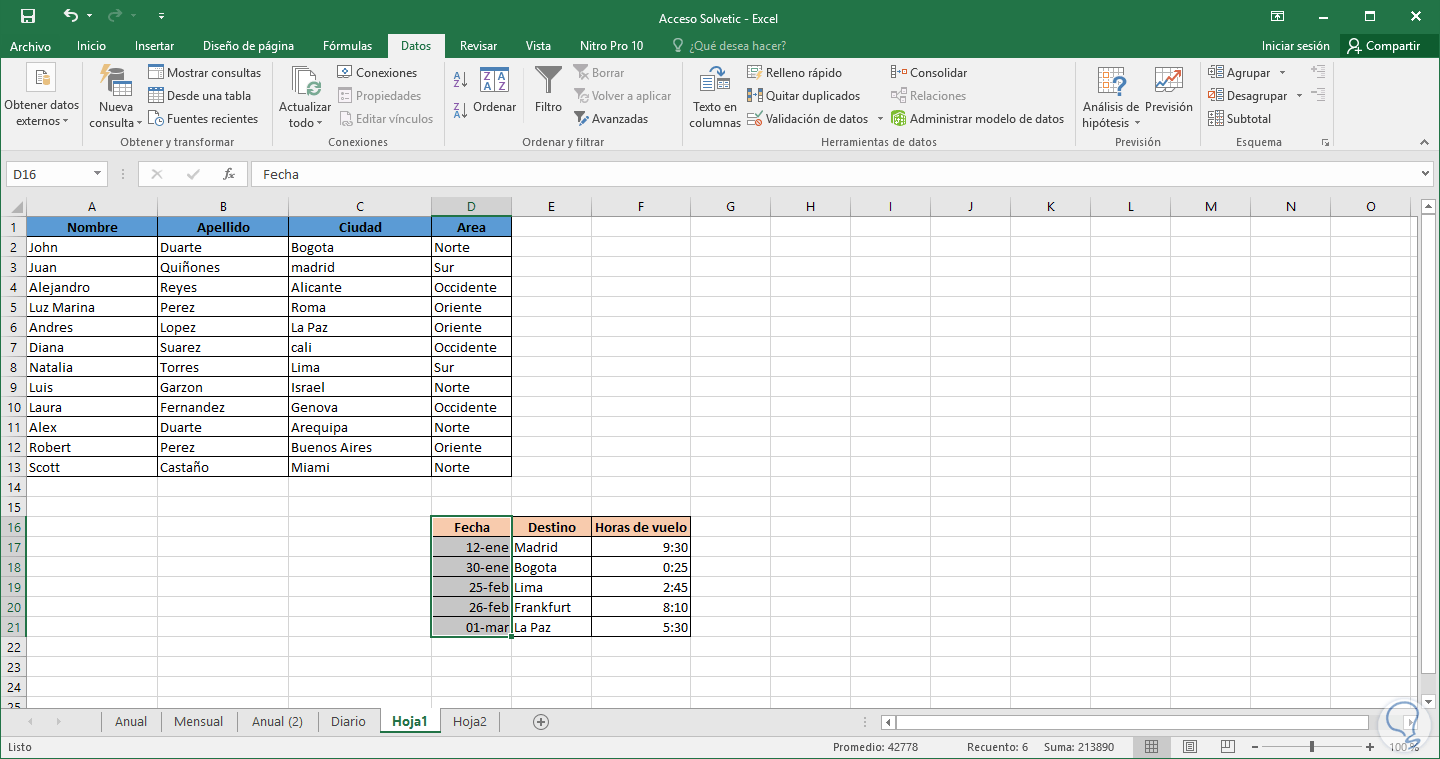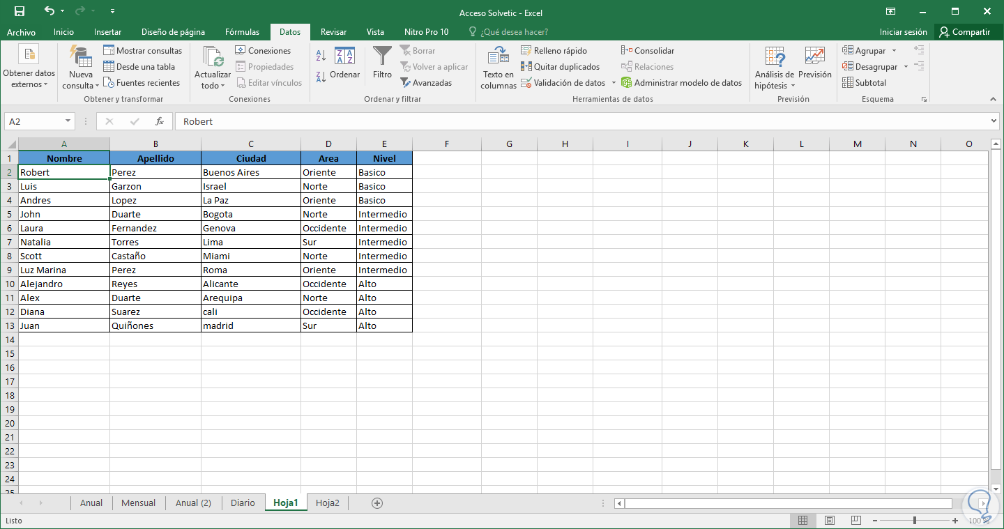 A continuación veremos cómo ordenar estos tipos de datos en una hoja en Excel 2016.