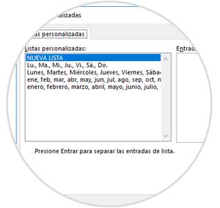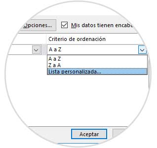 Para crear un criterio personalizable seleccionamos alguna de las celdas de dicha columna y pulsamos en el icono Ordenar ubicado en el grupo Ordenar y filtrar. En la ventana desplegada pulsamos sobre la opción Lista personalizada .Se abrirá la siguiente ventana: