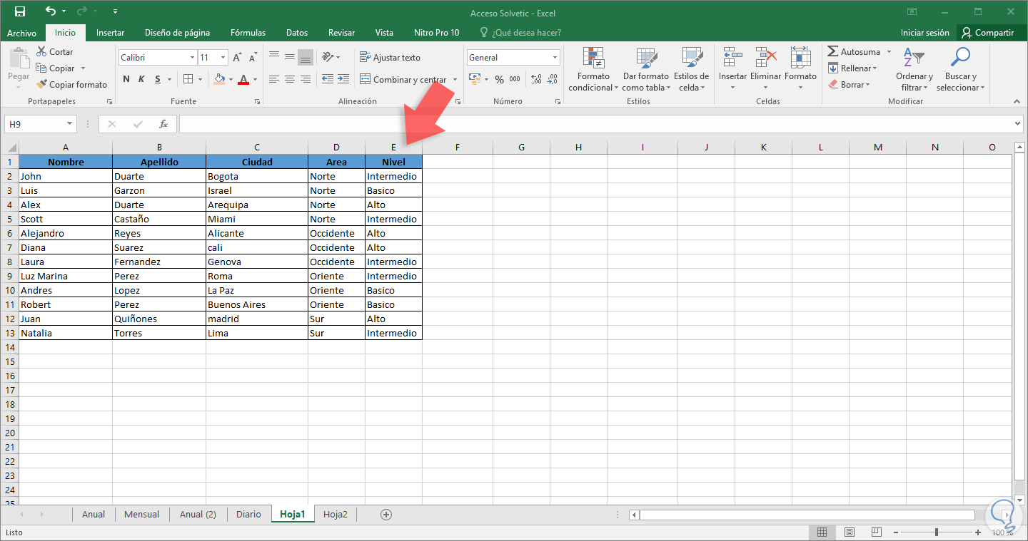 5. Cómo ordenar alfabéticamente datos en Excel