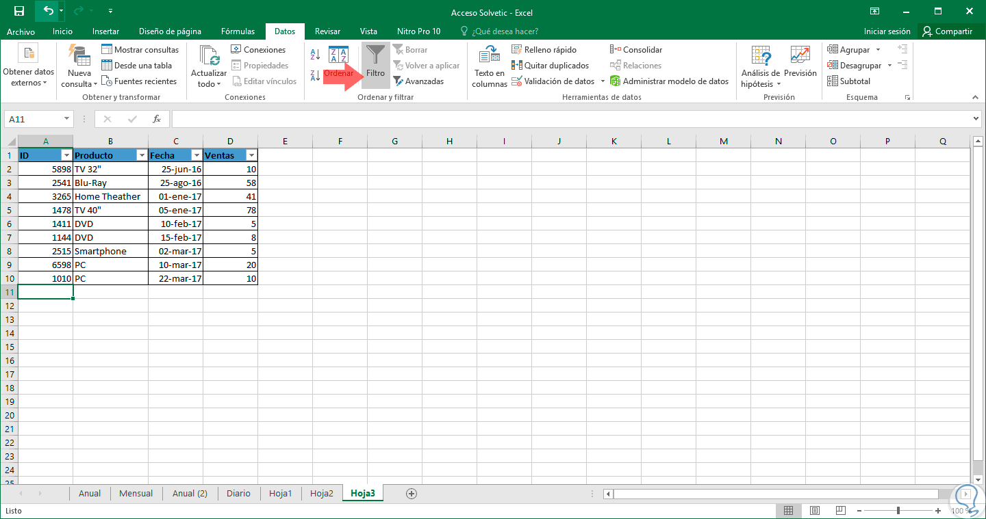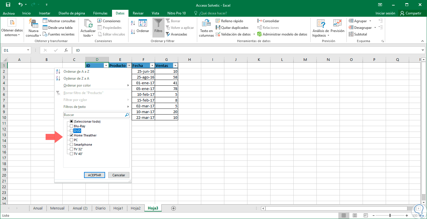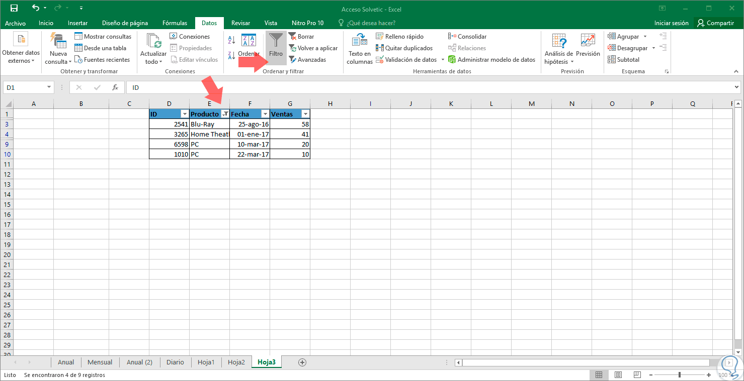 1. Cómo aplicar un filtro sencillo en Excel 2016