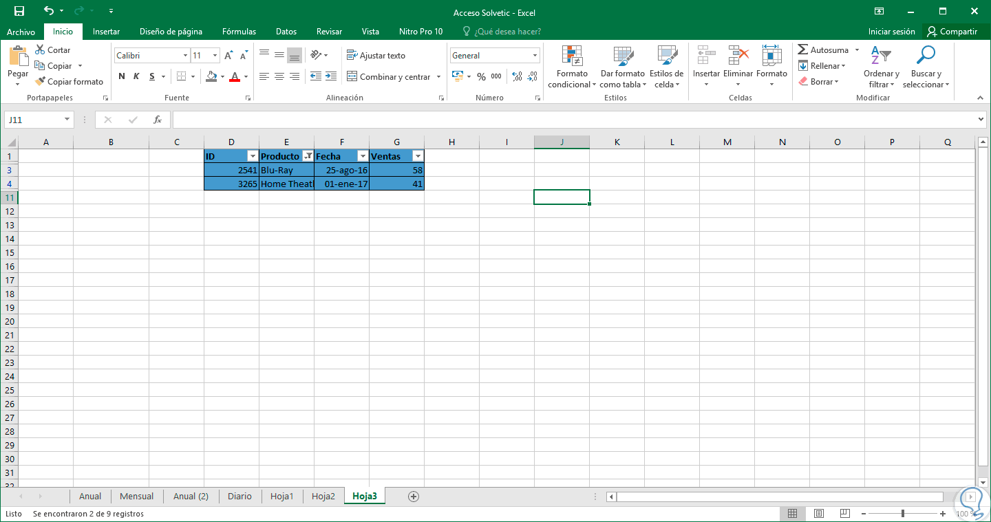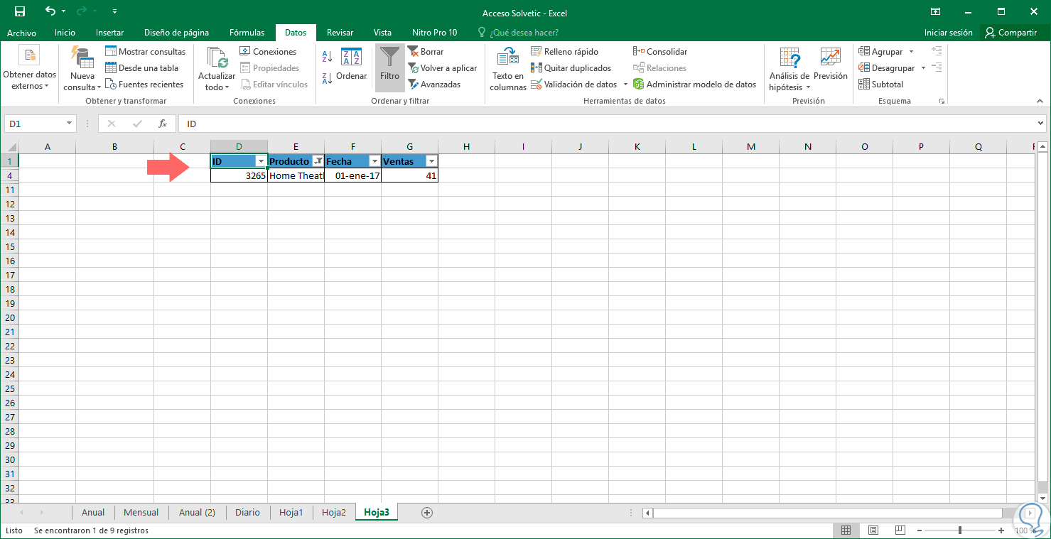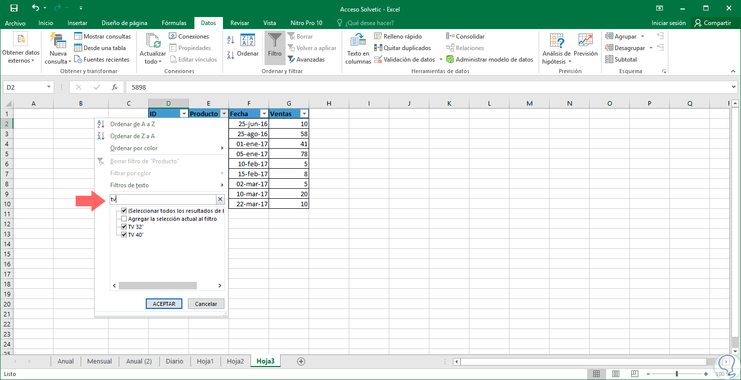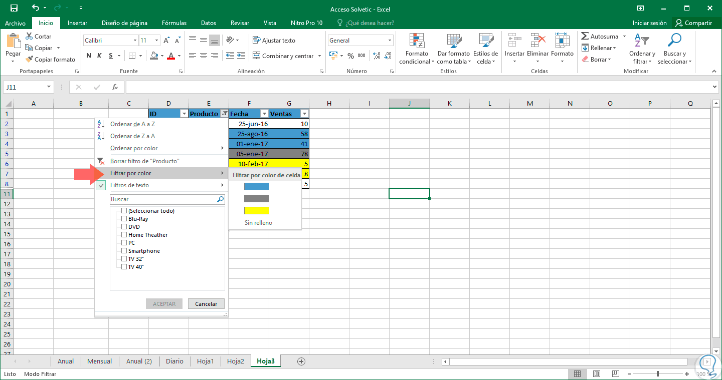 1. Cómo aplicar un filtro sencillo en Excel 2016