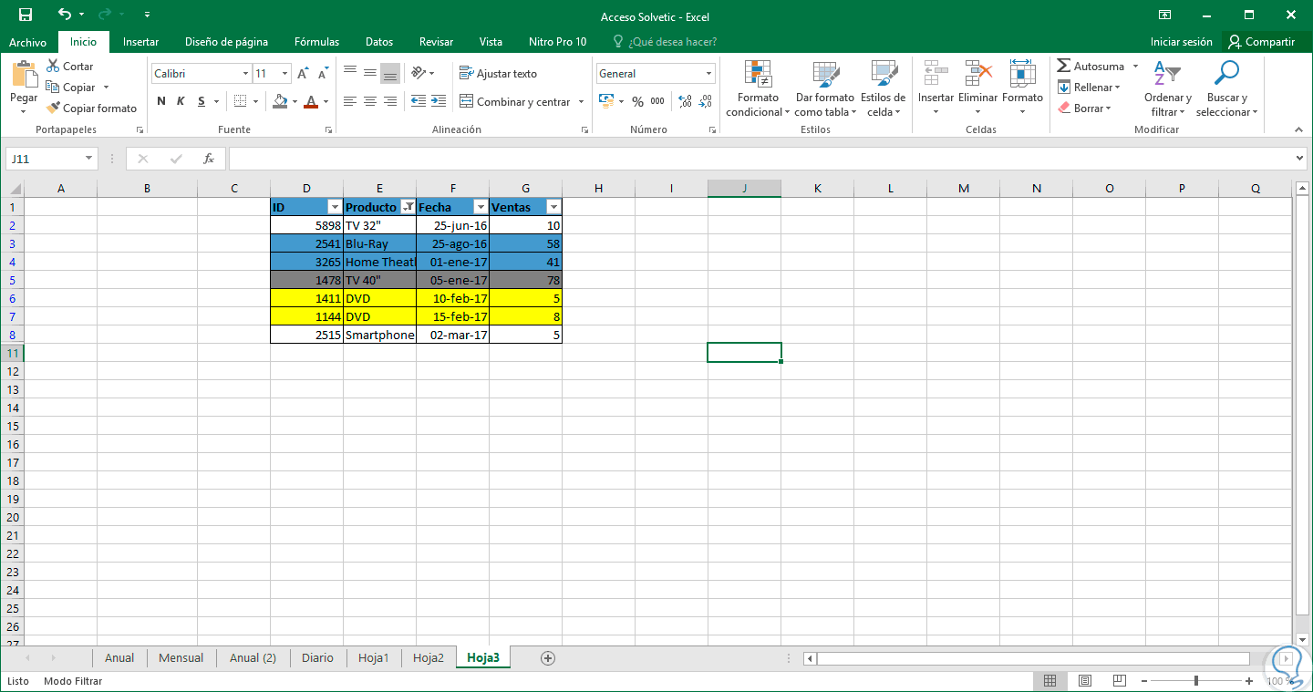 Una de las tareas más frecuentes en Excel 2016 es filtrar los datos para obtener resultados mucho más directos sin tener que navegar en grandes cantidades de datos.