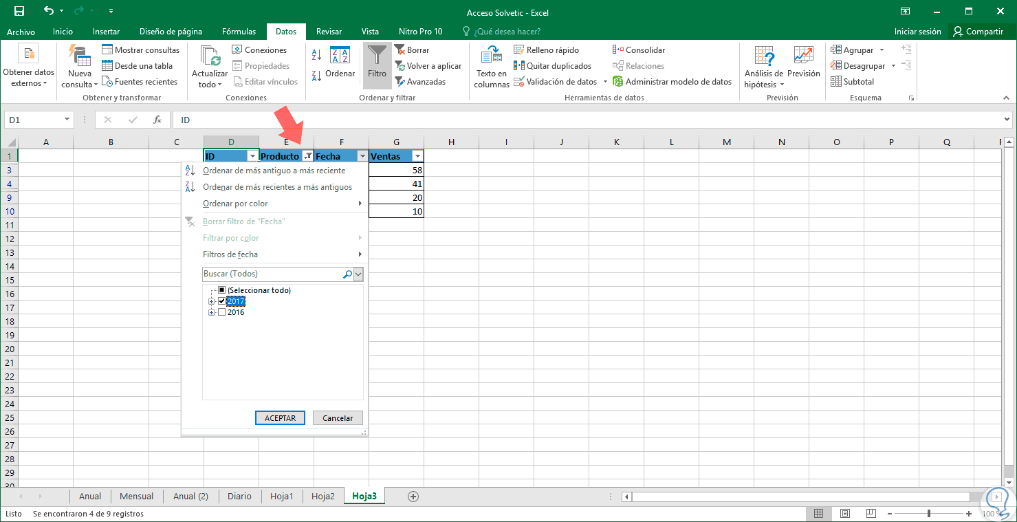 4. Cómo aplicar filtros avanzados en Excel 2016