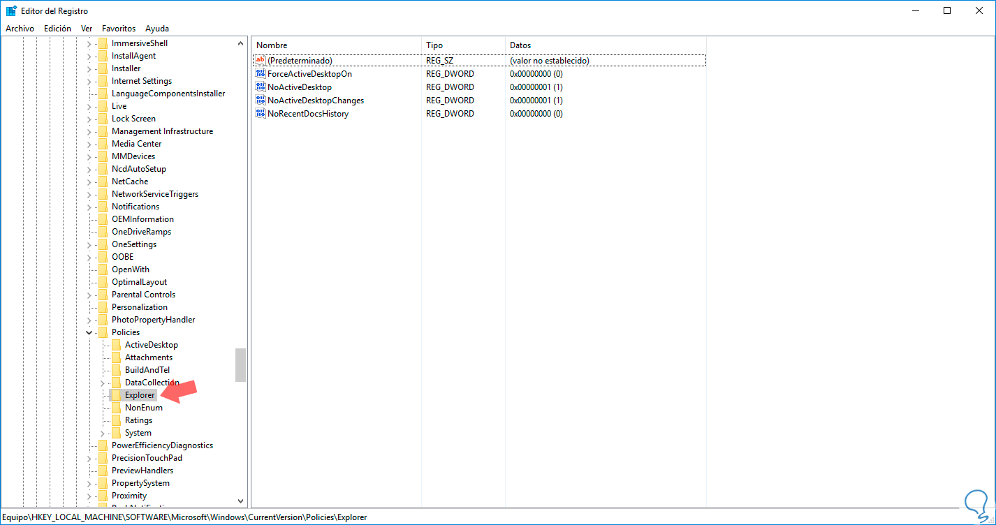 HKEY_LOCAL_MACHINE\Software\Microsoft\Windows\CurrentVersion\Policies\ Explorer