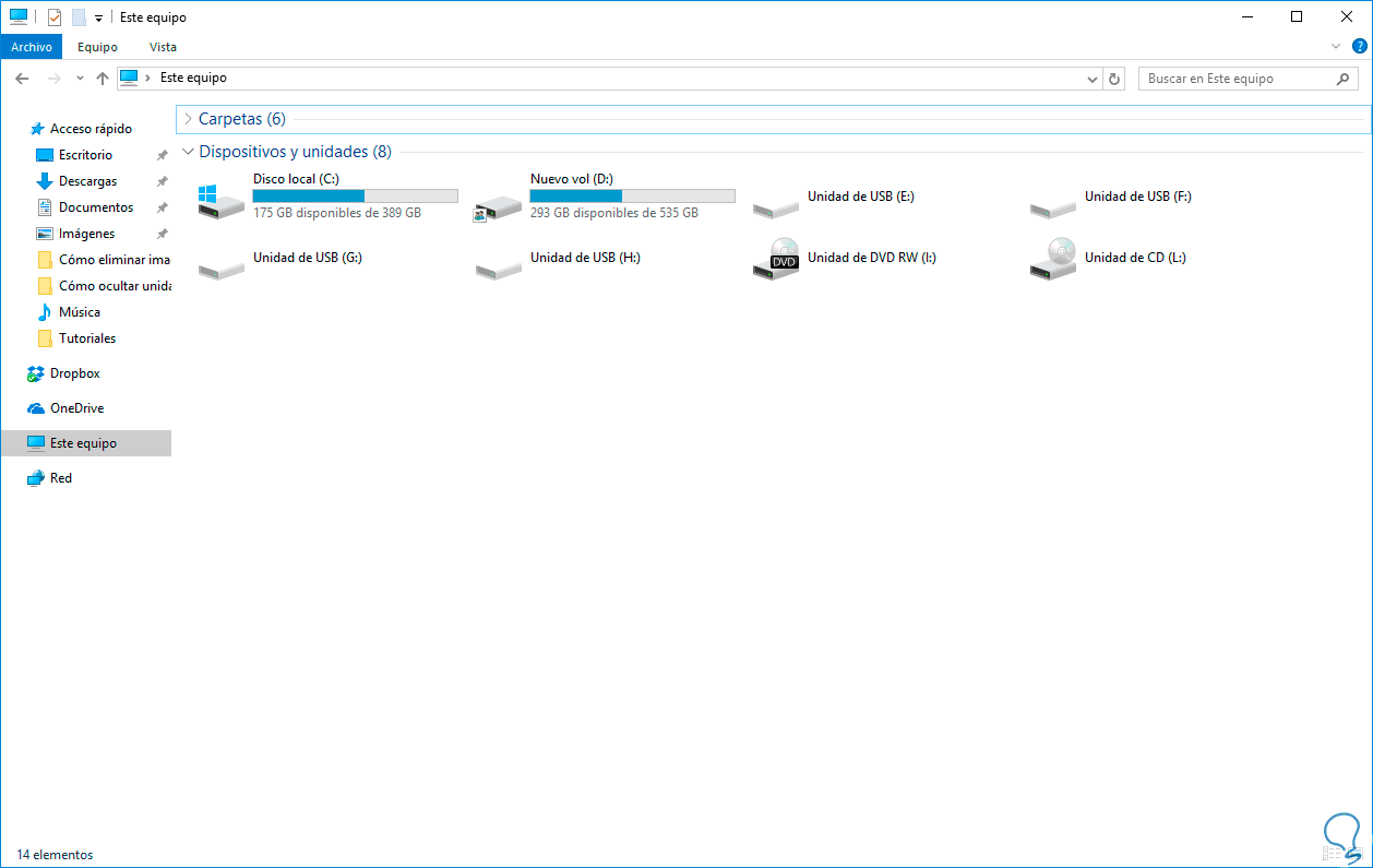Una vez definida la unidad pulsamos en Aplicar y luego en Aceptar para guardar los cambios. Podremos ver que la unidad B ya no está disponible en el explorador: