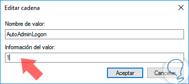 Ahora abrimos el registro llamado AutoAdminLogon y establecemos su valor en 1: