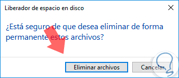 Se desplegará el siguiente mensaje en el cual pulsamos en la opción Eliminar archivos: