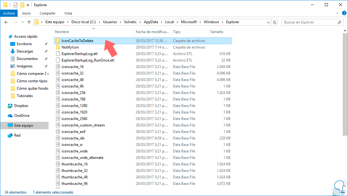 Allí pulsamos en la opción Cancelar y veremos que se ha creado la carpeta IconCacheToDelete o puede estar como ThumbCacheToDelete. Esto simplemente nos asegura que estos archivos serán eliminados de forma automática al reiniciar el sistema.
