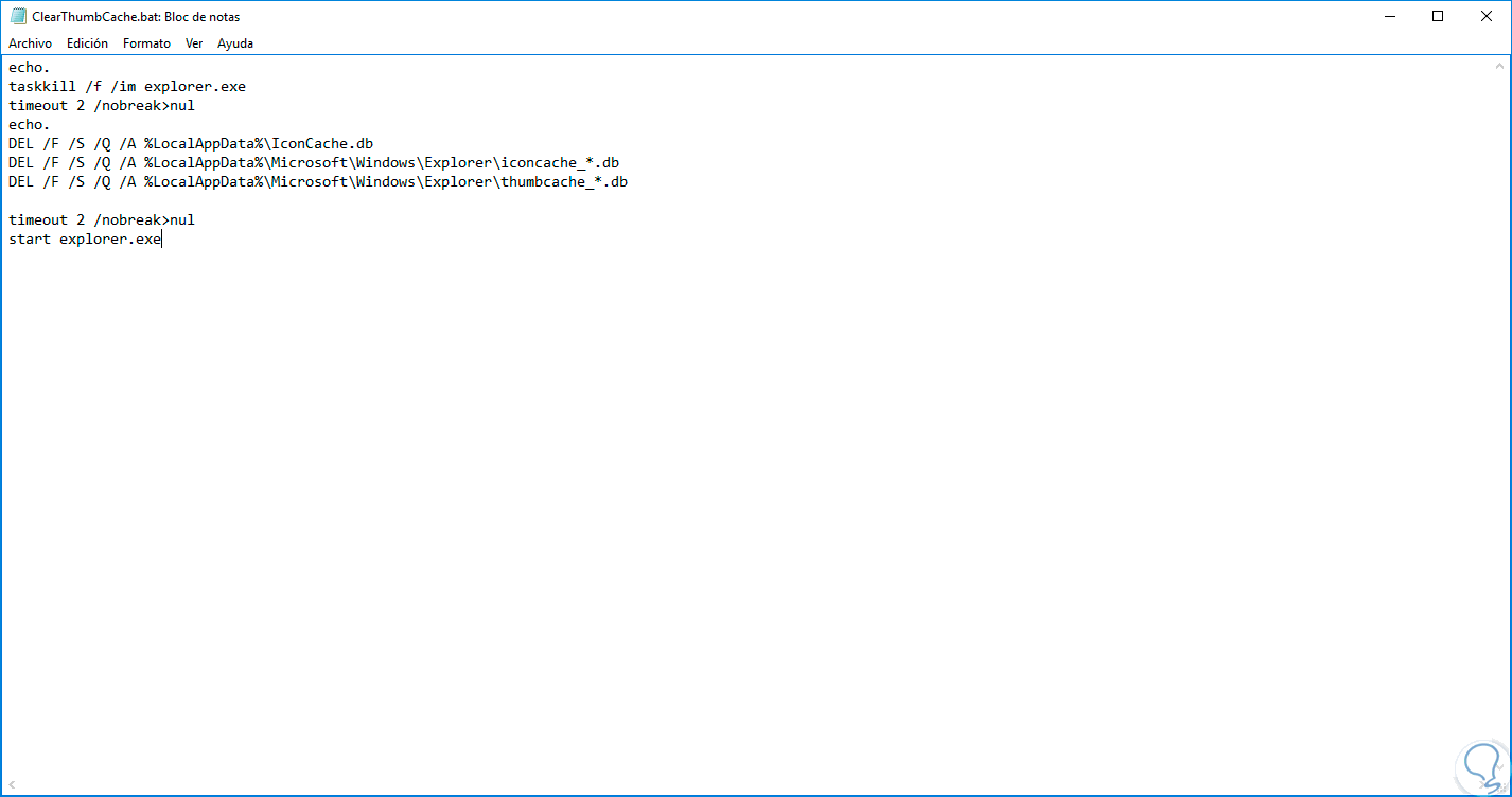 Finalmente contamos con la posibilidad de crear un archivo .bat para eliminar todas las miniaturas pulsando doble clic sobre el de forma automática.