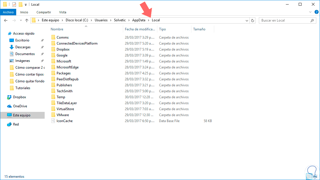 Allí seleccionamos el archivo IconCache y procedemos a borrarlo. Después de eliminarlo vamos a la siguiente ruta: