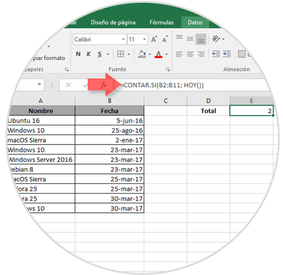 6. Fórmula para contar fechas en Excel 2016 con CONTAR.SI