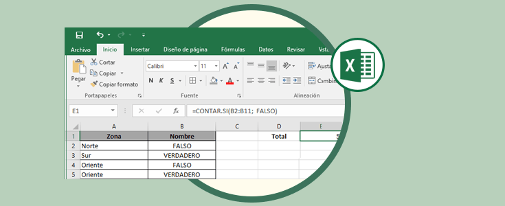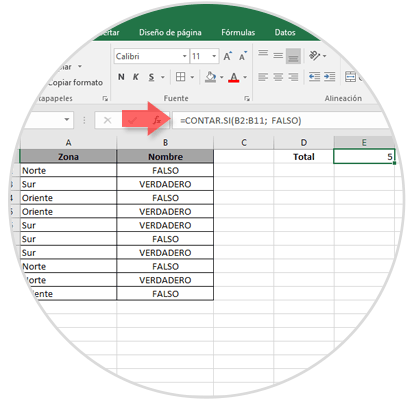 Por ejemplo, para saber cuántas celdas tiene el valor FALSO usaremos la siguiente sintaxis: