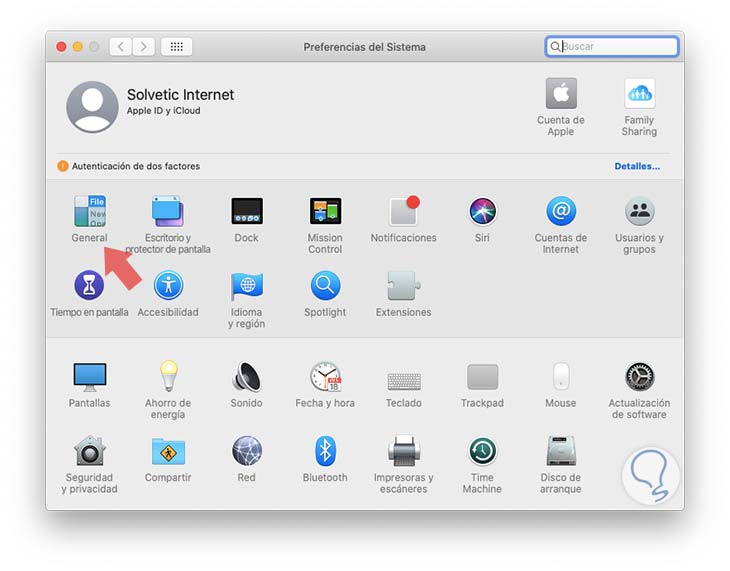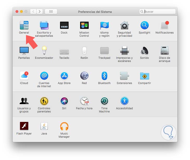 - Pulsar en el icono de Preferencias del sistema ubicado en el Dock