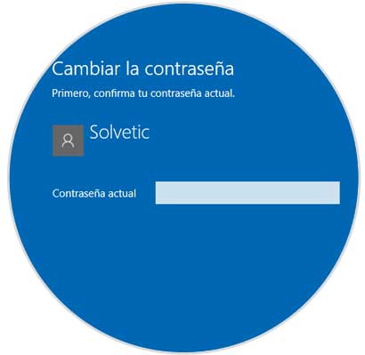 Allí pulsamos en la opción "Cambiar" ubicada en el campo "Contraseña" y se desplegará la siguiente ventana donde debemos indicar la contraseña actual: