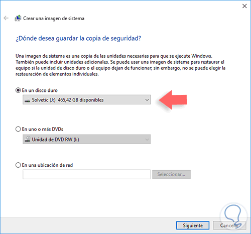 Una vez culmine el proceso definiremos donde se ha de almacenar la imagen de Windows 10, podemos elegir entre: