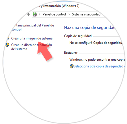 Una vez accedamos a dicha ruta pulsamos en la opción Crear una imagen de sistema ubicada en el costado derecho e iniciara el proceso de Windows: