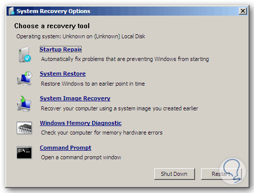 Una vez creado el disco basta con iniciar el sistema desde allí para acceder a las múltiples opciones ofrecidas para recuperar el sistema operativo donde encontramos la opción de Recuperación de imagen del sistema y es allí donde usaremos la imagen creada anteriormente: