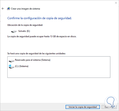 En caso de contar con más particiones estas estarán visibles en esta ventana. Con estos valores definidos pulsamos en Iniciar la copia de seguridad para que Windows 10 inicie el respectivo proceso: