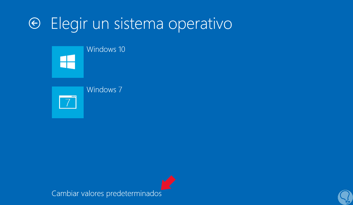 Allí pulsamos en la opción Elegir sistema operativo predet. Para definir cuál será el sistema operativo por defecto. Allí pulsamos en la opción deseada y de esta forma ese será el sistema por defecto.