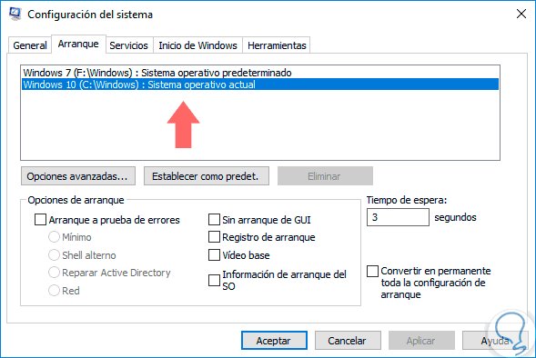3. Elegir Sistema Operativo al arrancar Windows 10