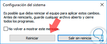 Pulsamos en Aceptar y se desplegará la siguiente ventana. Allí pulsamos en Reiniciar para aplicar los cambios.