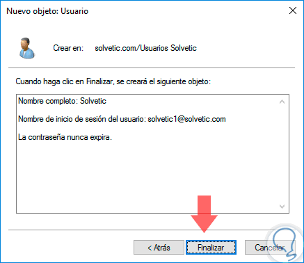 Pulsamos en Finalizar y podremos ver el nuevo usuario en la OU definida: