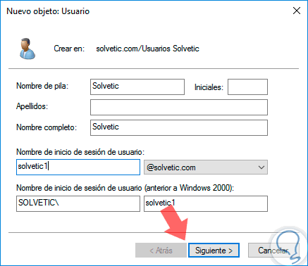 - En caso de existir más dominios definir a cuál dominio irá ligado el usuario.