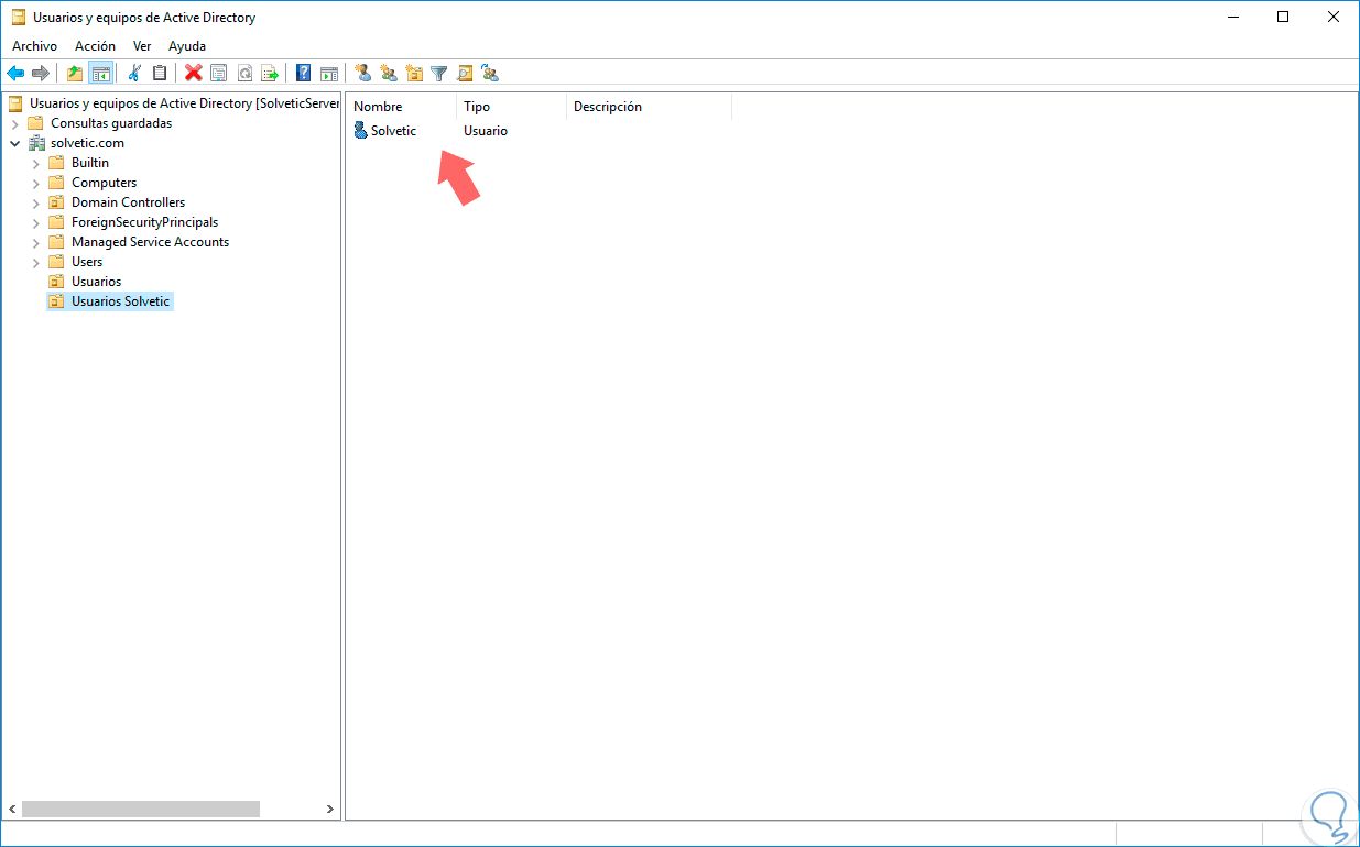 - Ir al Administrador del servidor / Herramientas / Usuarios y equipos de Active Directory.
