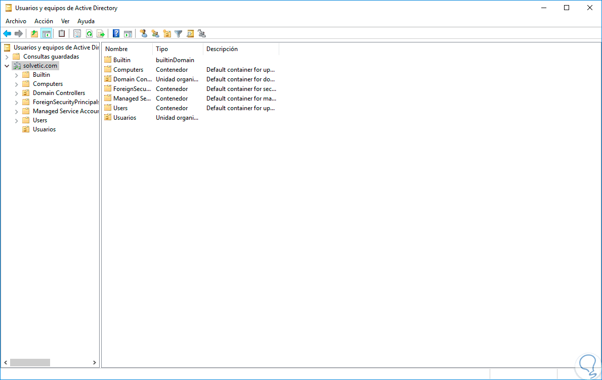 1. Cómo acceder a Usuarios y equipos de Active Directory Windows Server 2016