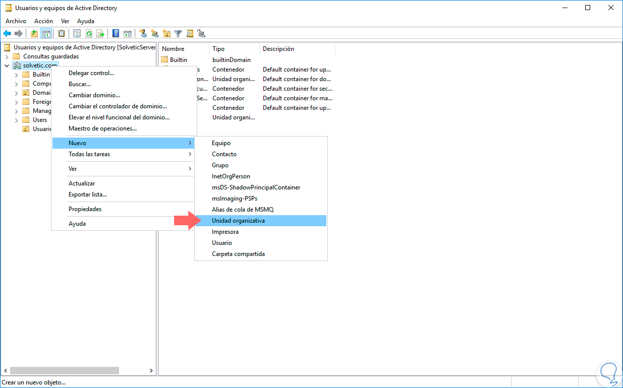 3. Cómo acceder la creación de la OU (Unidad Organizativa) Windows Server 2016