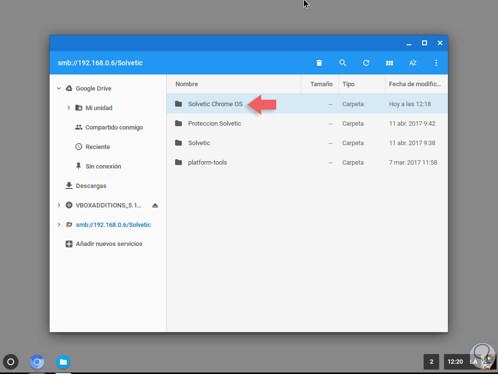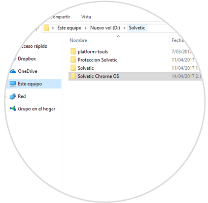 Para comprobar que todo funciona correctamente vamos a la ruta del equipo de destino, en este caso Windows 10, y creamos una nueva carpeta llamada Solvetic Chrome OS:
