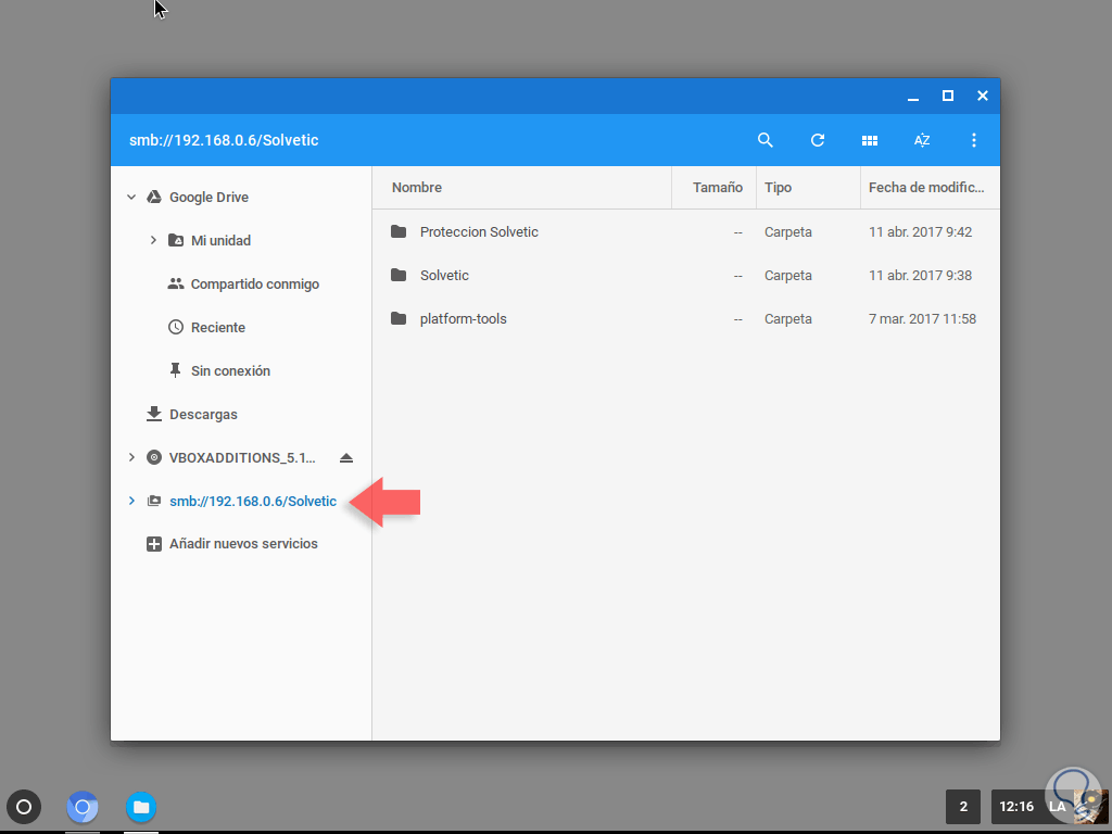 Si vamos a Chromebook y actualizamos la ruta SMB veremos la nueva carpeta creada: