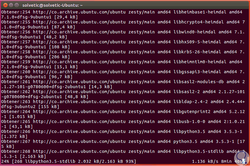 Posteriormente observaremos que se nos pregunta si deseamos descargar e instalar los paquetes necesarios de Ubuntu Zesty (Ubuntu 17.04):