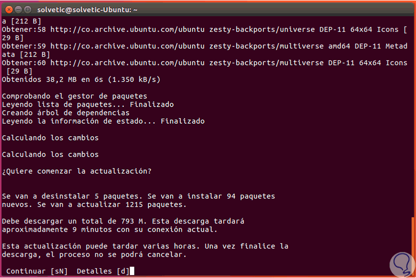 Ingresamos la letra s e iniciará todo el proceso de descarga y actualización:
