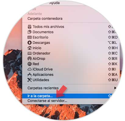 Para esto en primer lugar debemos cerrar todas las aplicaciones o programas activos en macOS Sierra. Ahora vamos al Finder y seleccionamos la opción Ir / ir a la carpeta: