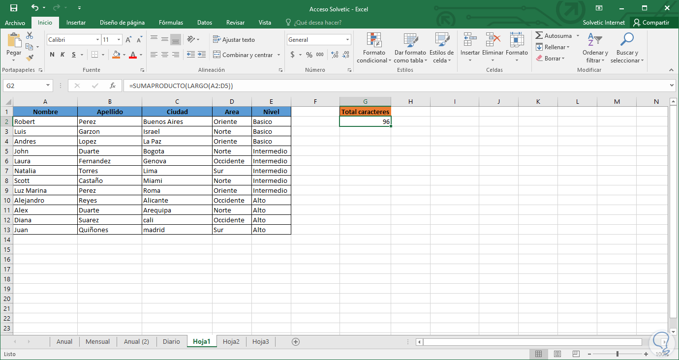 Solvetic hoy analizará algunas formas para conocer exactamente cuántos caracteres tenemos dentro de una celda especifica o dentro de un determinado rango. De este modo vamos a poder llevar la cuenta sobre aquello que necesitemos sin tener que andar contando de manera manual. A continuación se muestran las diferentes opciones a la hora de contar caracteres en Excel.