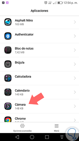 Pulsamos en ella y allí ubicamos la aplicación Cámara: