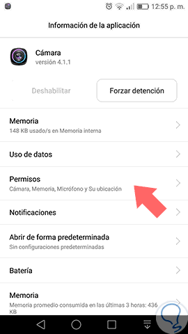 Al pulsar en Cámara seleccionamos la opción Permisos en la nueva ventana: