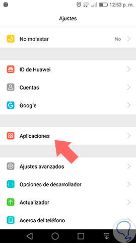 Accedemos a la opción Ajustes en Android y ubicamos la línea Aplicaciones: