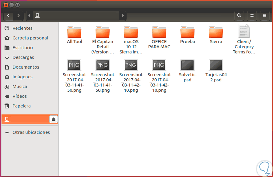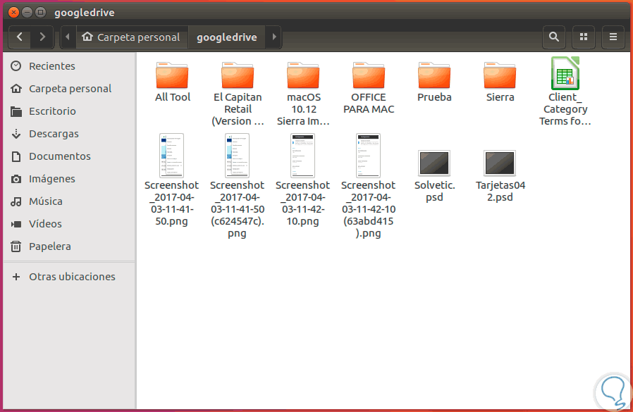 Podremos ver que tenemos nuestra carpeta creada y todo el contenido de Google Drive disponible allí: