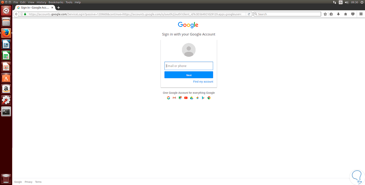 Pulsamos Enter y de forma automática se abrirá el navegador predeterminado donde debemos ingresar las respectivas credenciales: