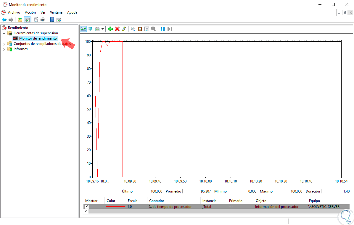 2. Cómo usar el monitor de rendimiento en Windows Server 2016