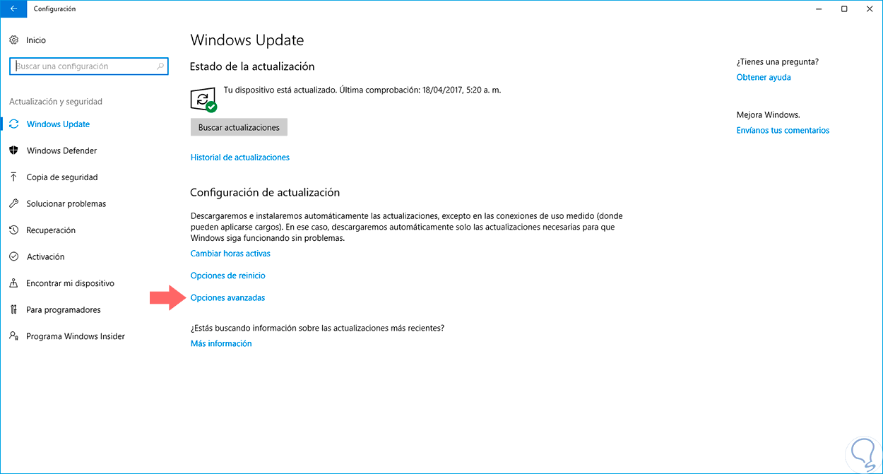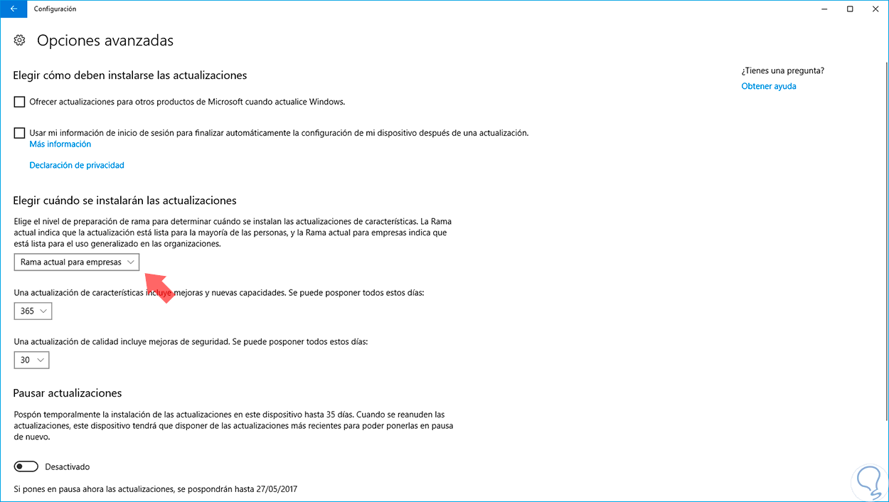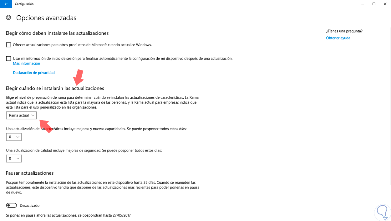 2. Cómo configurar las actualizaciones en Windows 10 Creators Update