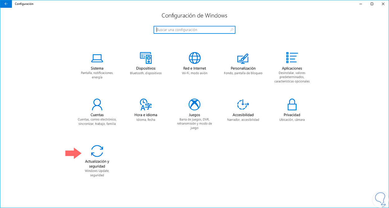 Allí seleccionamos la ficha Actualización y seguridad y en la nueva ventana seleccionamos Windows Update:
