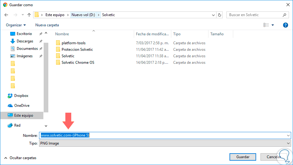 Podemos ver que la imagen se ajusta perfecto a nuestra ventana web. Nuevamente vamos al menú anterior y seleccionamos la opción Capture screenshoot y se desplegará la siguiente ventana donde definiremos la ruta a guardar la imagen. Podemos ver que su formato es PNG. Pulsamos en guardar y de esta forma hemos guardado un pantallazo de calidad.