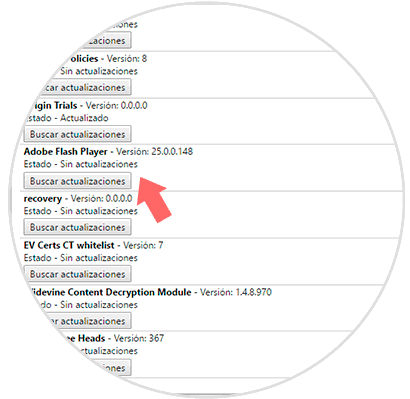 En el campo Adobe Flash Player pulsaremos en el botón Buscar actualizaciones con el fin de actualizar dicho componente.