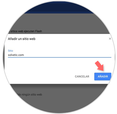 Finalmente debemos incluir el sitio web en el que queremos permitir que se ejecute Flash.