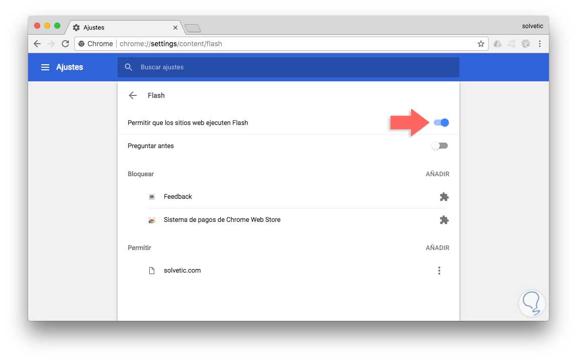 Gracias Solvetic, tenia que habilitar Adobe Flash Player en algunas páginas web porque no sé por que Chrome en su ultima actualizacion habia quitado Flash y no funcionaba. Estaba acojonado, porque pensaba que ya no se podría usar. Pero vosotros me habéis dado la alegría del día. (como muchas veces).