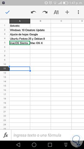 Así de sencillo es realizar el ajuste de texto en Hojas de cálculo en dispositivos móviles.