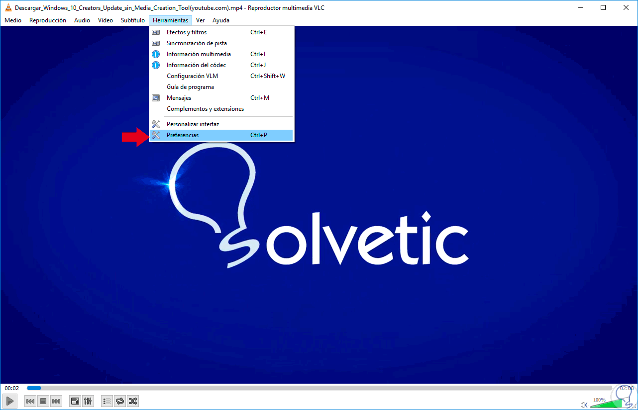 Por defecto en VLC la tecla E es la que nos permite visualizar los fotogramas de un vídeo, si deseamos establecer una nueva tecla basta con ir a la ficha “Herramientas / Preferencias” o usar la combinación de teclas siguiente: